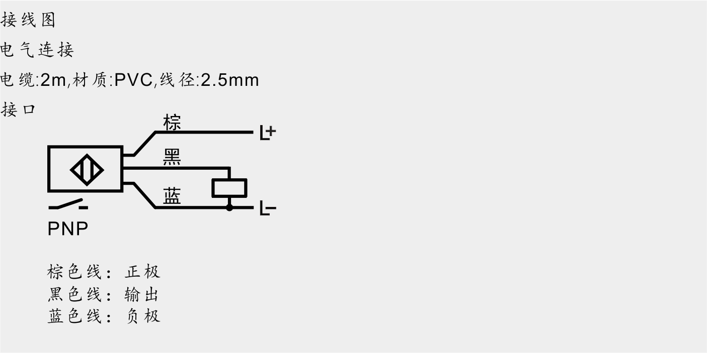 | 连接形式 | 电线引出;电缆线:2m,材质:PVC,线径2.5mm |