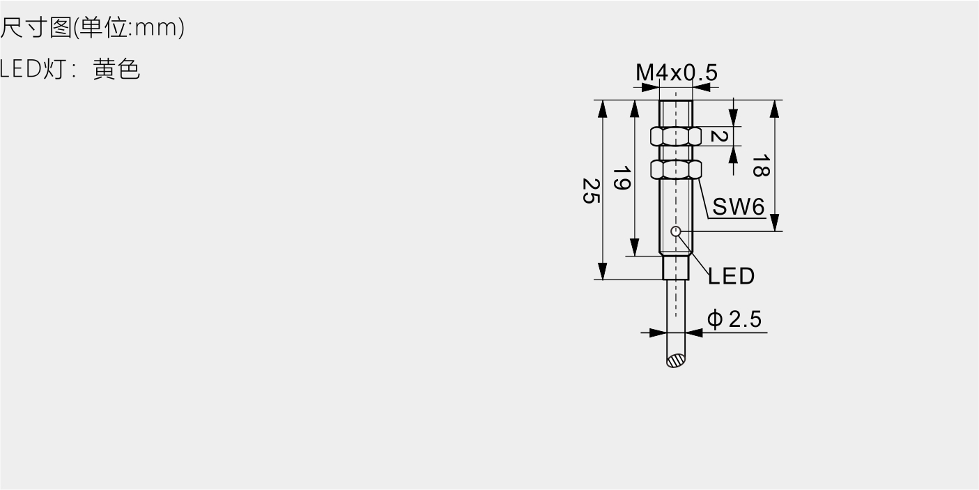 | 连接形式 | 电线引出;电缆线:2m,材质:PVC,线径2.5mm |