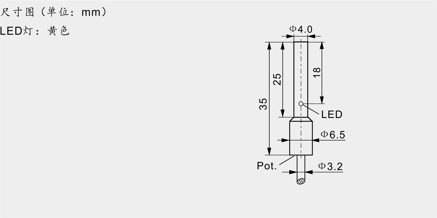 | 连接形式 | 电线引出;电缆线:2m,材质:PUR,线径3.2mm |