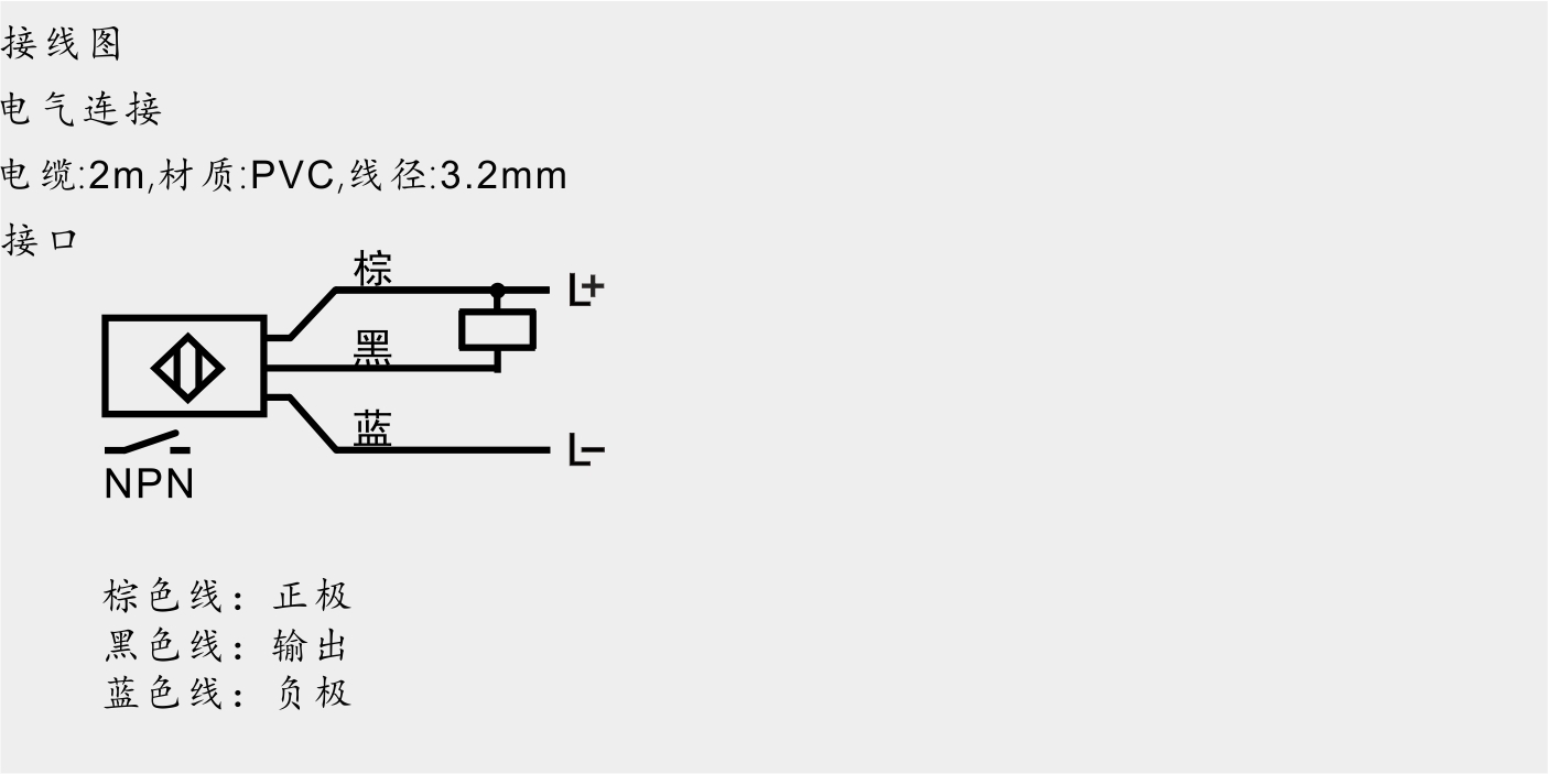 | 连接形式 | 电线引出;电缆线:2m,材质:PUR,线径3.2mm |